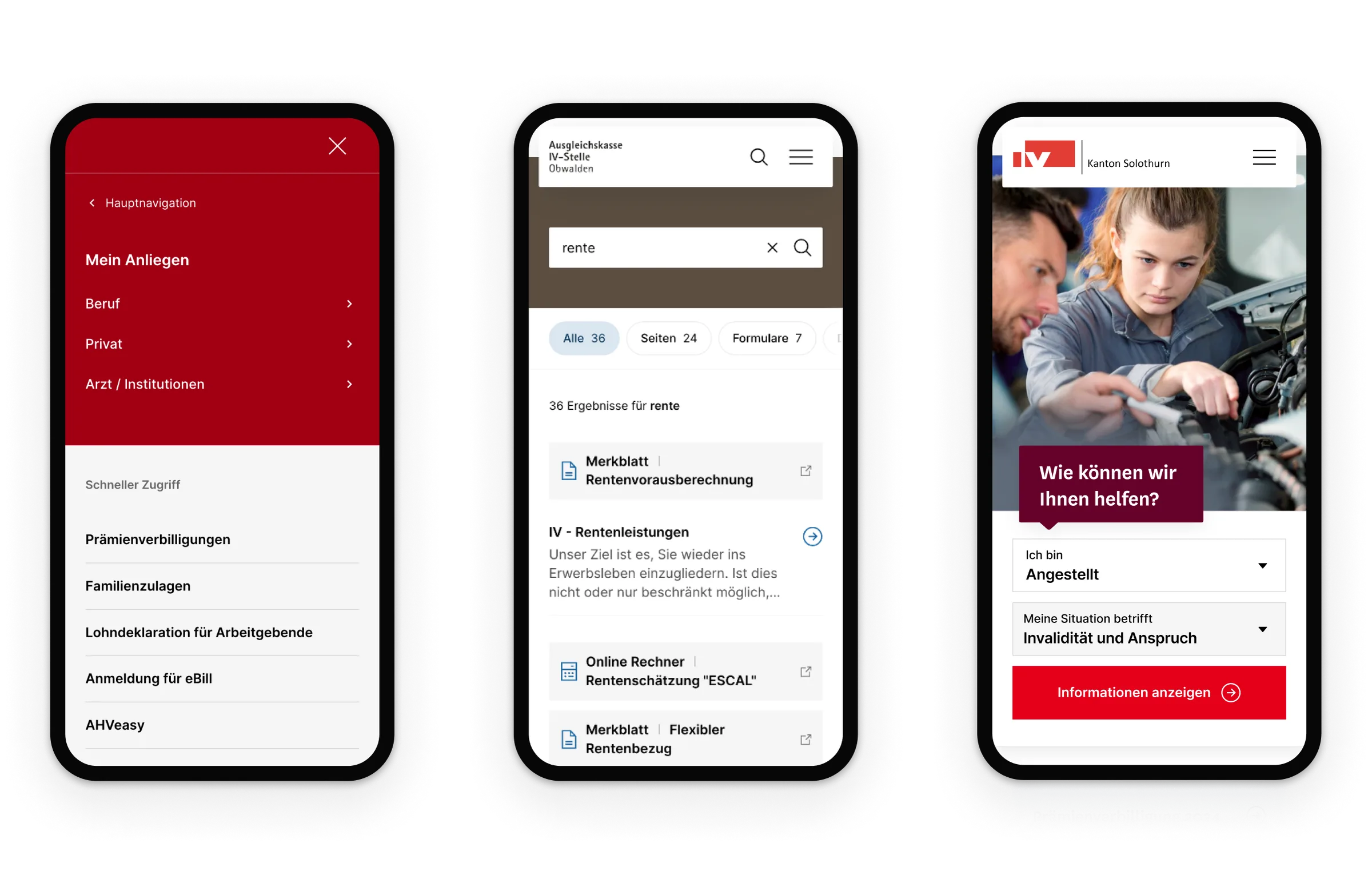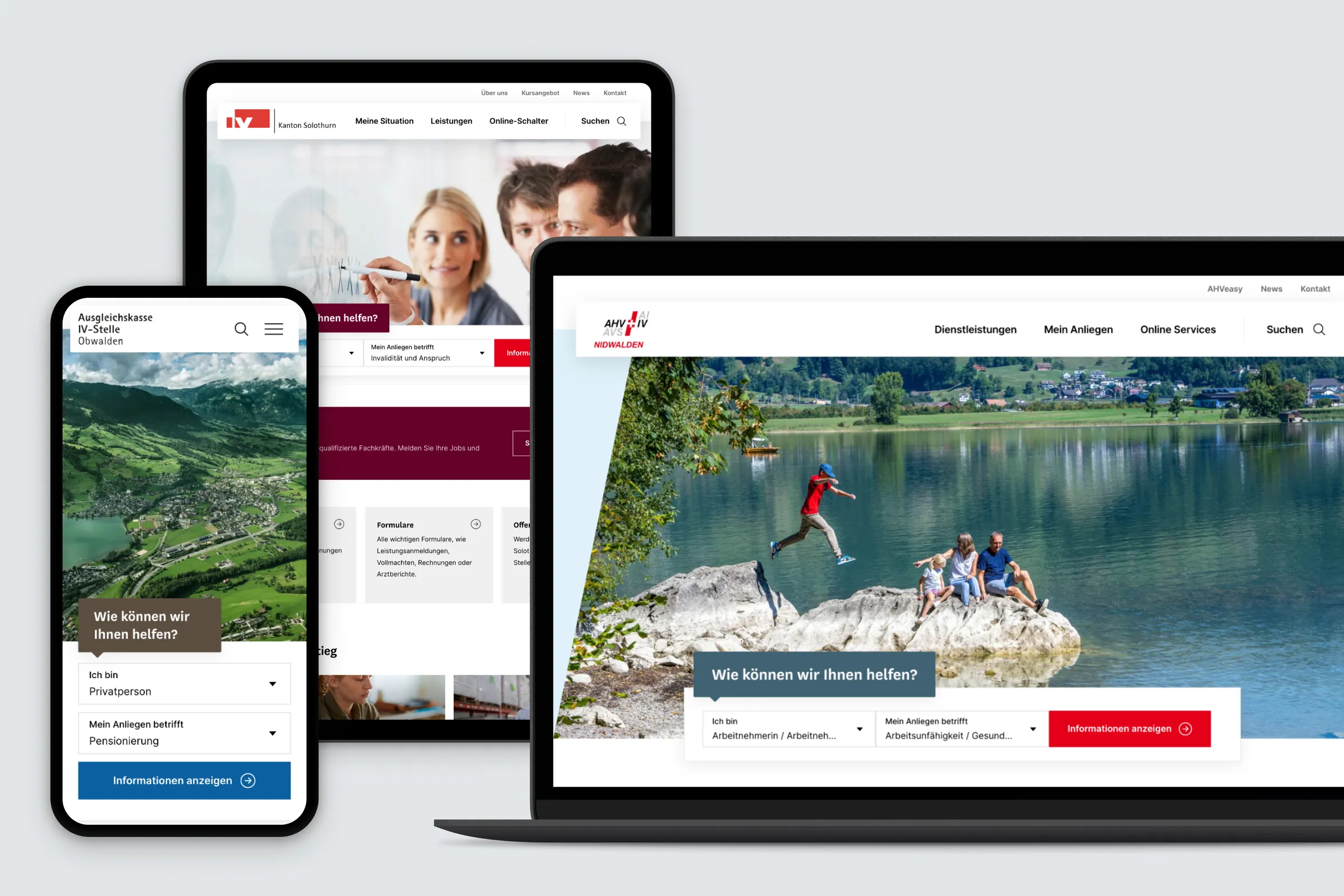 Die Ausgleichskassen sind die kantonalen Behörden, die bei der Umsetzung der Sozialpolitik eine Schlüsselrolle einnehmen und so zur sozialen Stabilität und zum Wohlstand in der Schweiz beitragen. Sie verwalten unter anderem die Altersversicherung, die Invalidenversicherung und die Erwerbsersatzversicherung. Im Zuge des Relaunches von 11 Ausgleichskassen und IV-Stellen wurde Gold Interactive mit dem Mandat beauftragt, eine moderne, benutzerfreundliche und zukunftsfähige Weblösung zu entwickeln.
