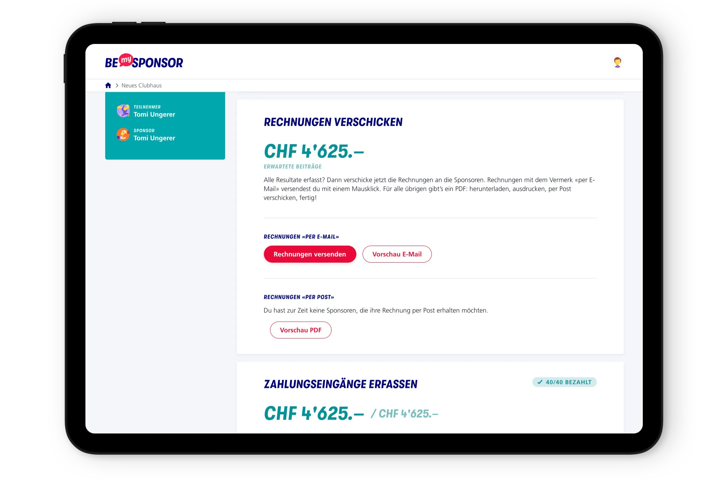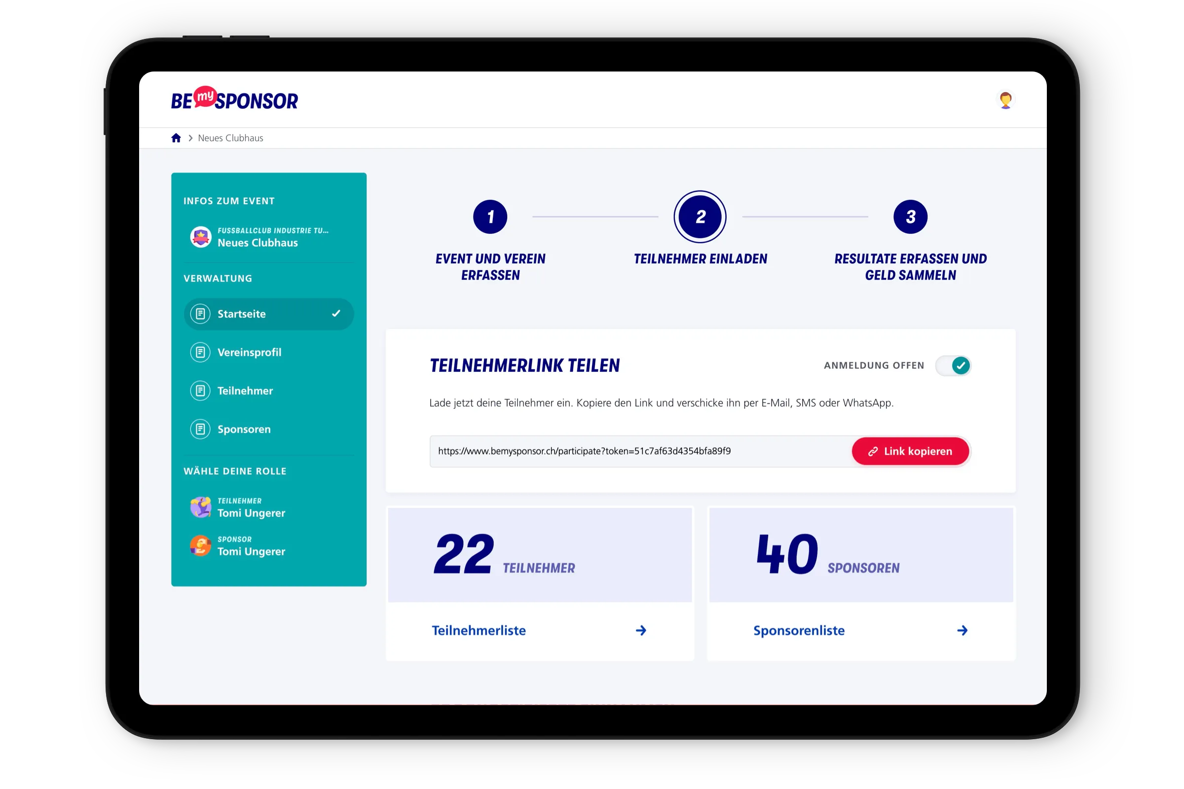 Und die Plattform kommt an! Bereits eine Vielzahl von Vereinen nutzt BeMySponsor für ihre Sponsoringevents – Tendenz steigend. Und die Feedbacks sind durchwegs positiv: Für Vereine reduziert sich der administrative Aufwand. Teilnehmer erreichen auf digitalem Weg mehr Sponsoren. Und am Ende des Tages fliesst mehr Geld in die Vereinskasse.