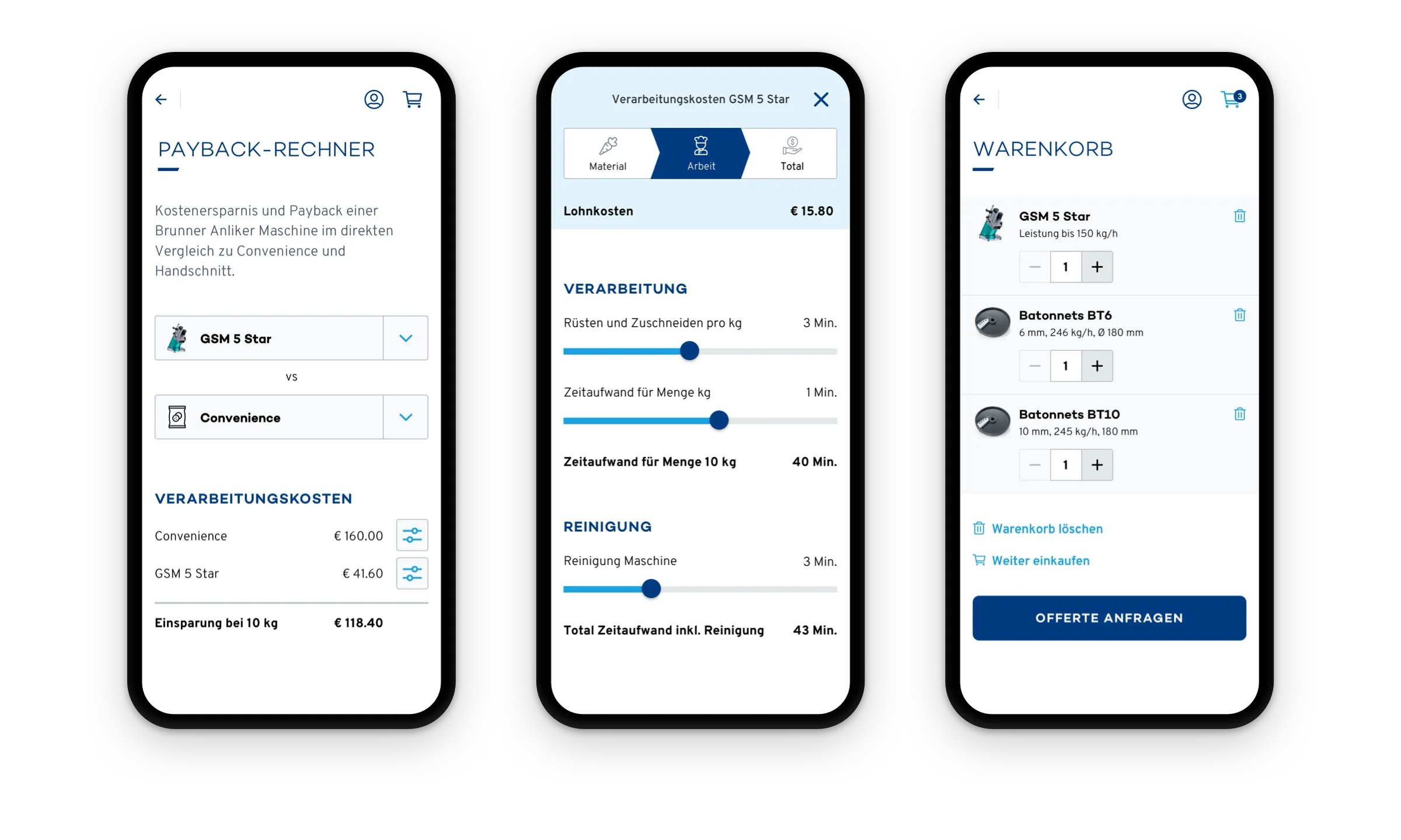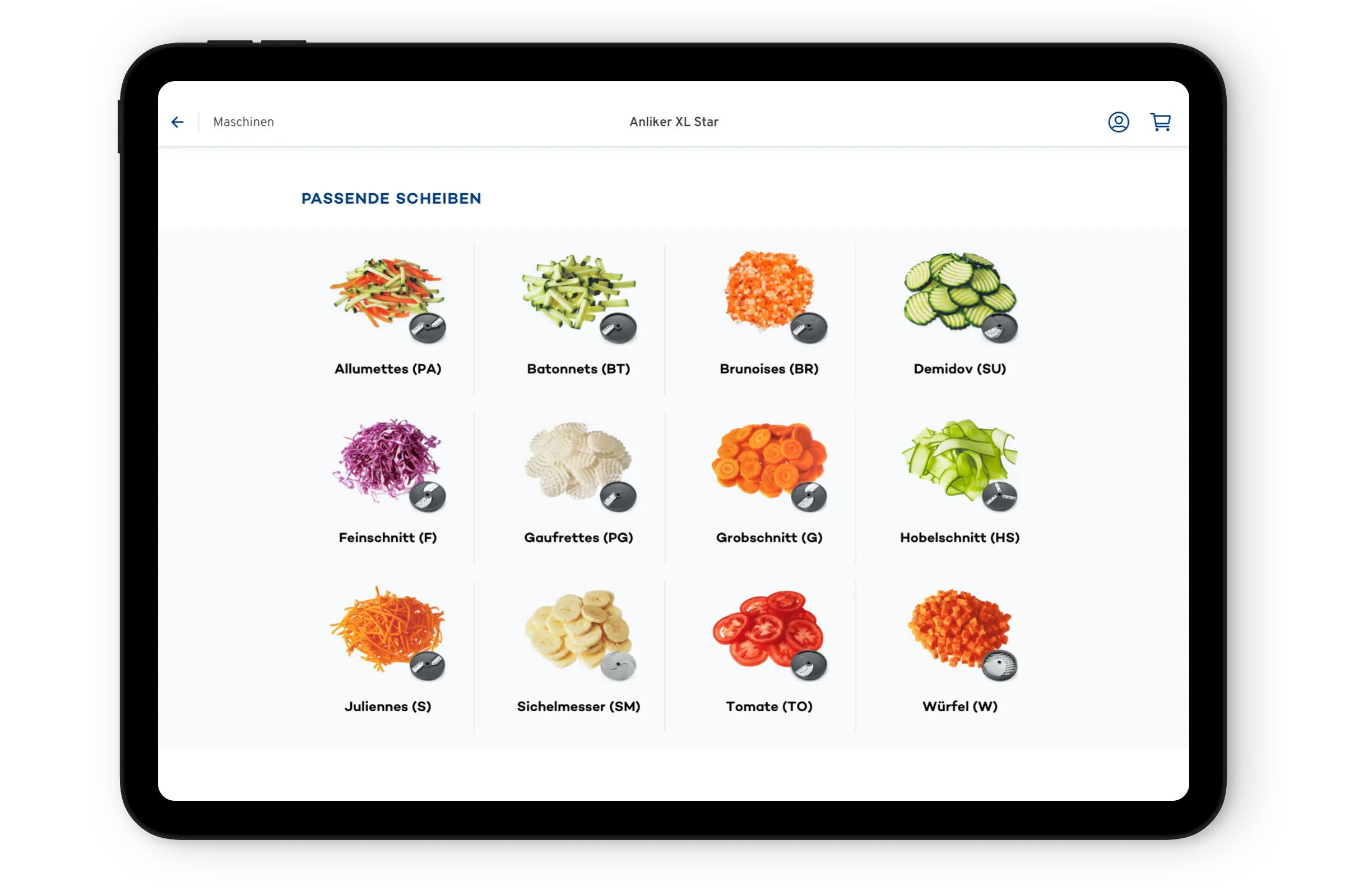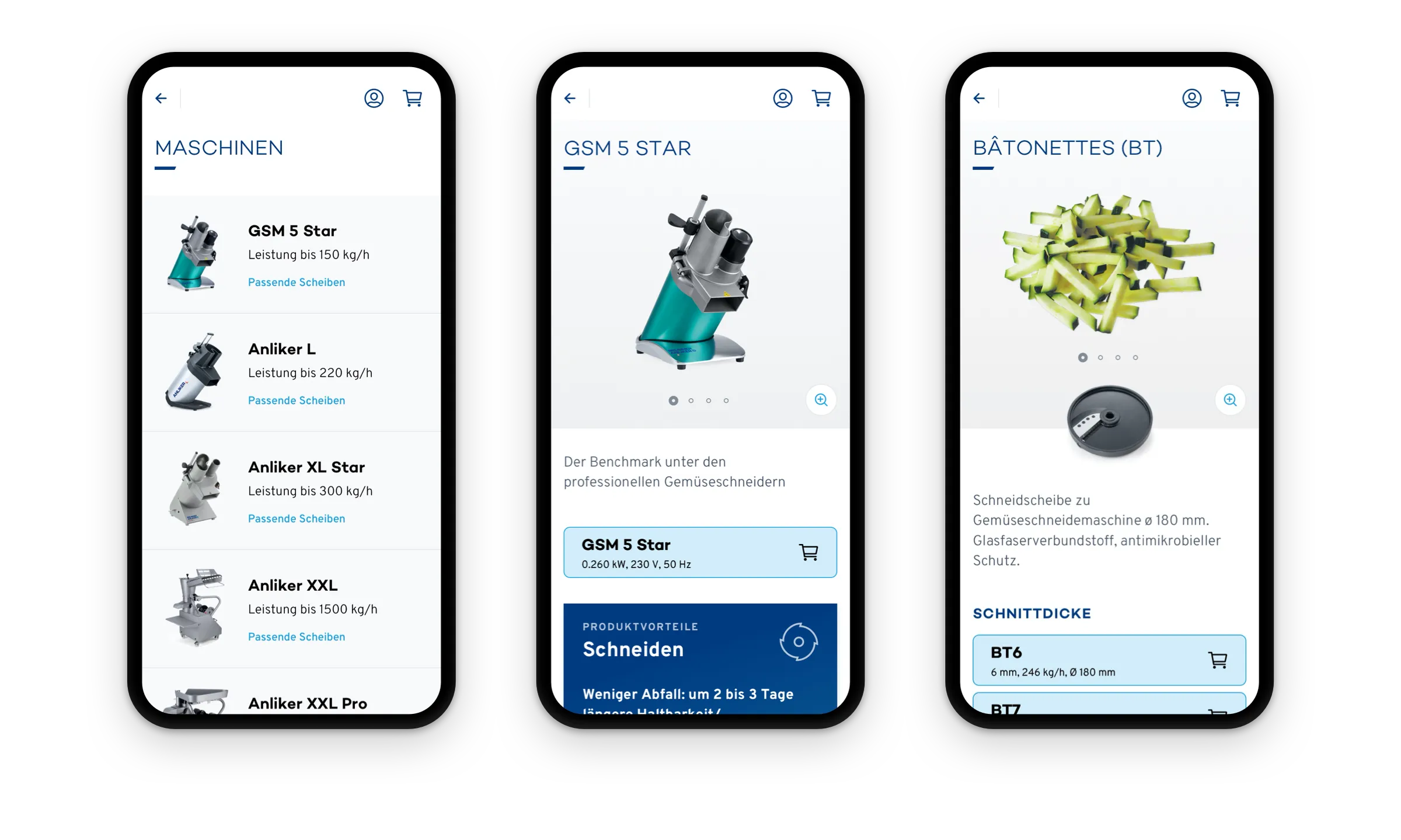 Die Sales-App von Brunner-Anliker liefert im Verkaufsgespräch Fakten und Argumente für die hochwertigen Gemüseschneidemaschinen. Sie unterstützt Händler in der Beratung und vereinfacht die Bestellung.