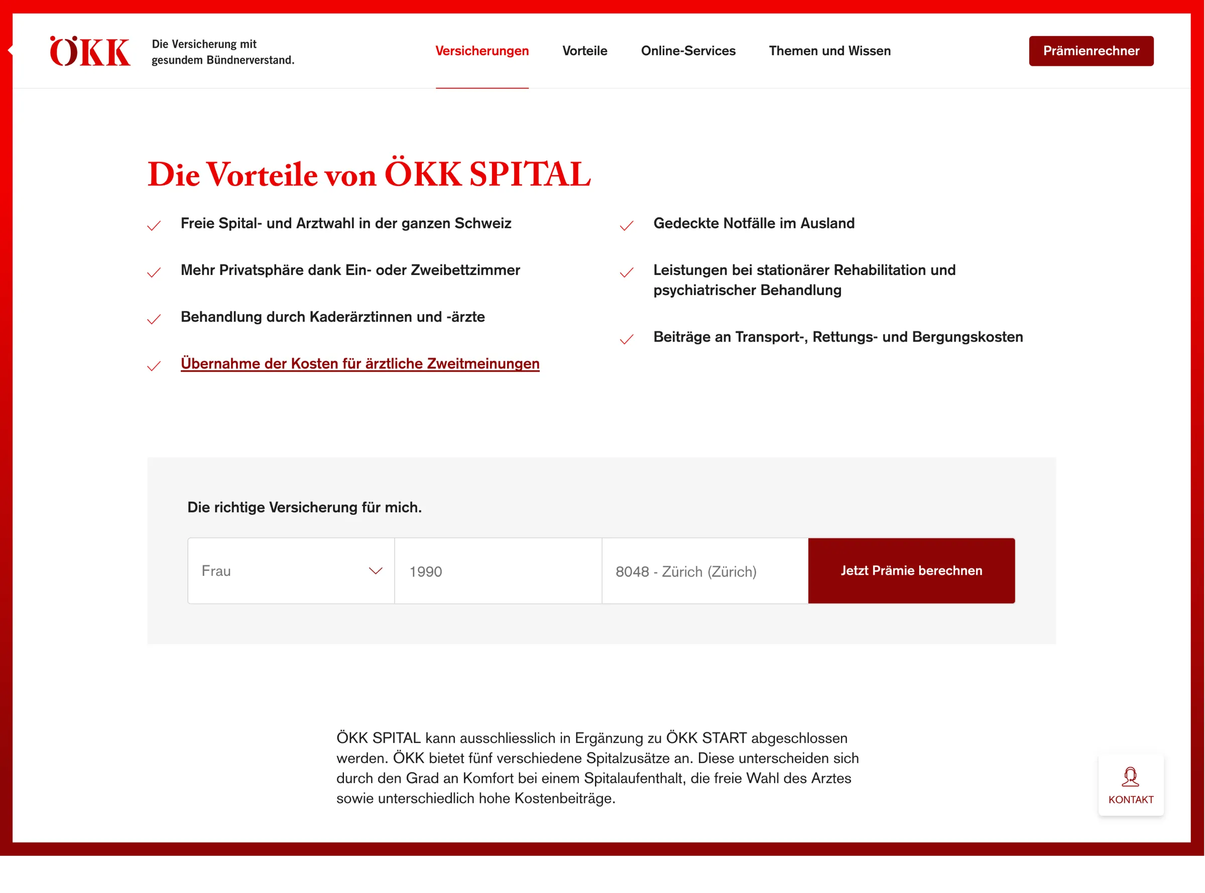 ÖKK macht mit ihrer neuen Plattform einen weiteren Schritt in die digitale Zukunft. Neukunden finden mit wenigen Klicks das passende Produkt. Bestehende Kundinnen und Kunden können sich noch einfacher mit ihrer Versicherung austauschen und relevante Informationen finden.