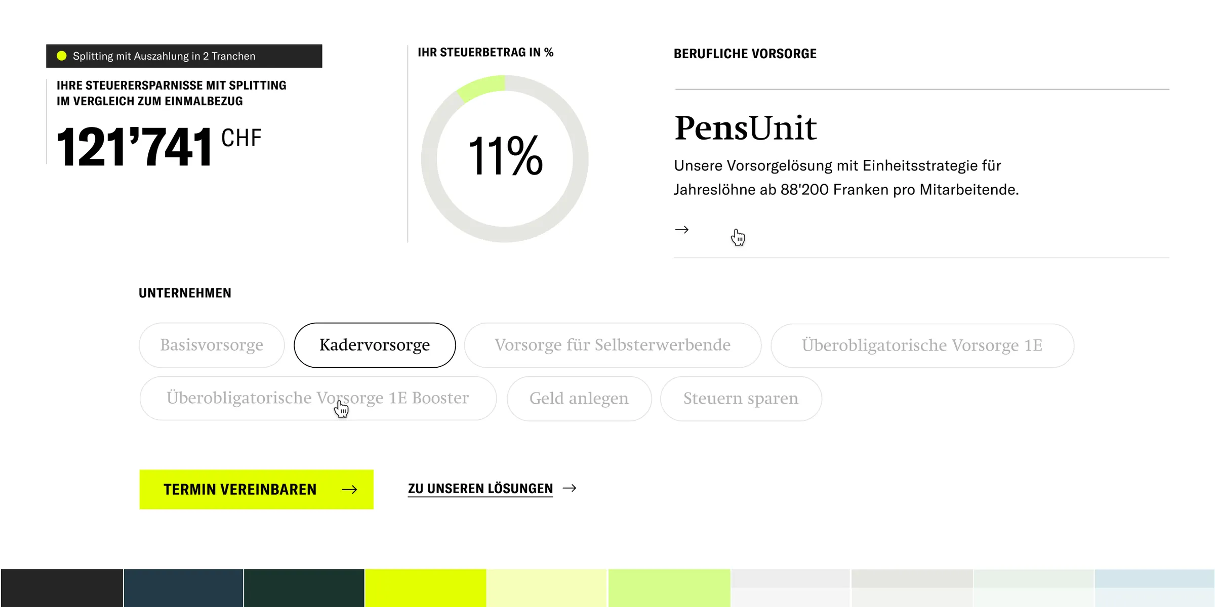 Im Zentrum stand ein tiefes Verständnis für die unterschiedlichen Kundenbedürfnisse: Statt auf konventionelle Muster der Vorsorgebranche zu setzen, wurde eine mutige visuelle Sprache mit einer intuitiven Informationsarchitektur kombiniert – komplexe Themen werden dadurch klar, zugänglich und verständlich vermittelt.