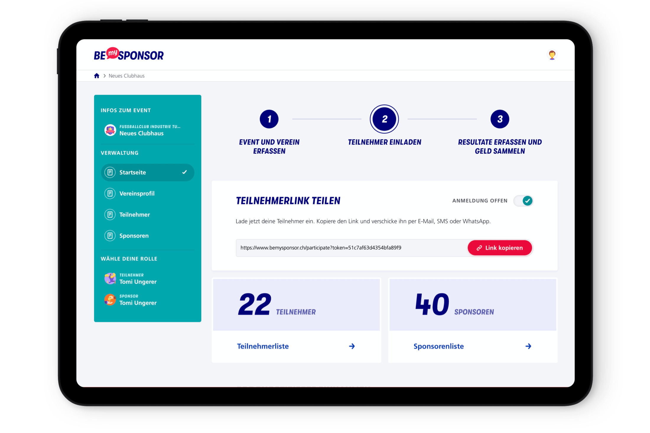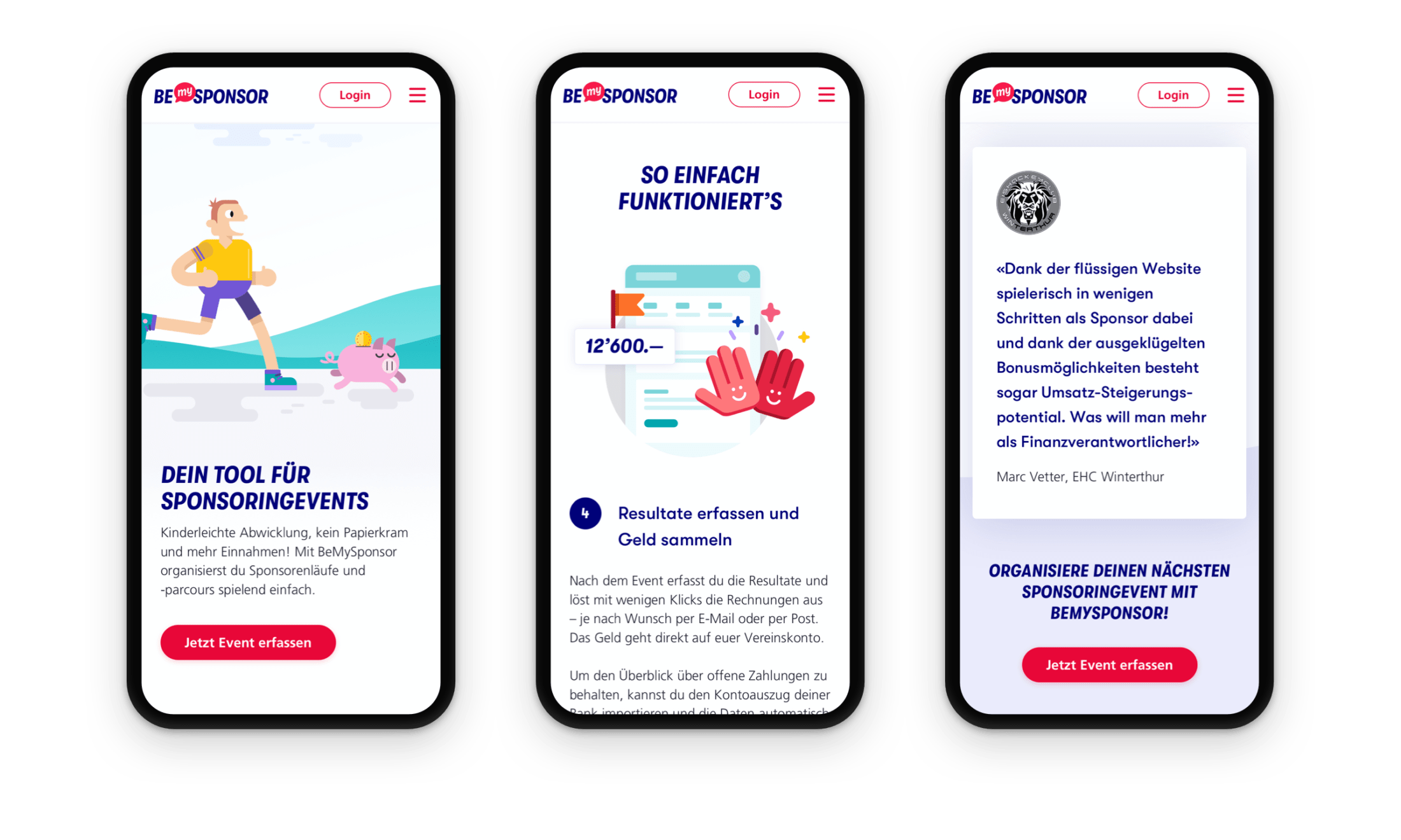 Und die Plattform kommt an! Bereits eine Vielzahl von Vereinen nutzt BeMySponsor für ihre Sponsoringevents – Tendenz steigend. Und die Feedbacks sind durchwegs positiv: Für Vereine reduziert sich der administrative Aufwand. Teilnehmer erreichen auf digitalem Weg mehr Sponsoren. Und am Ende des Tages fliesst mehr Geld in die Vereinskasse.