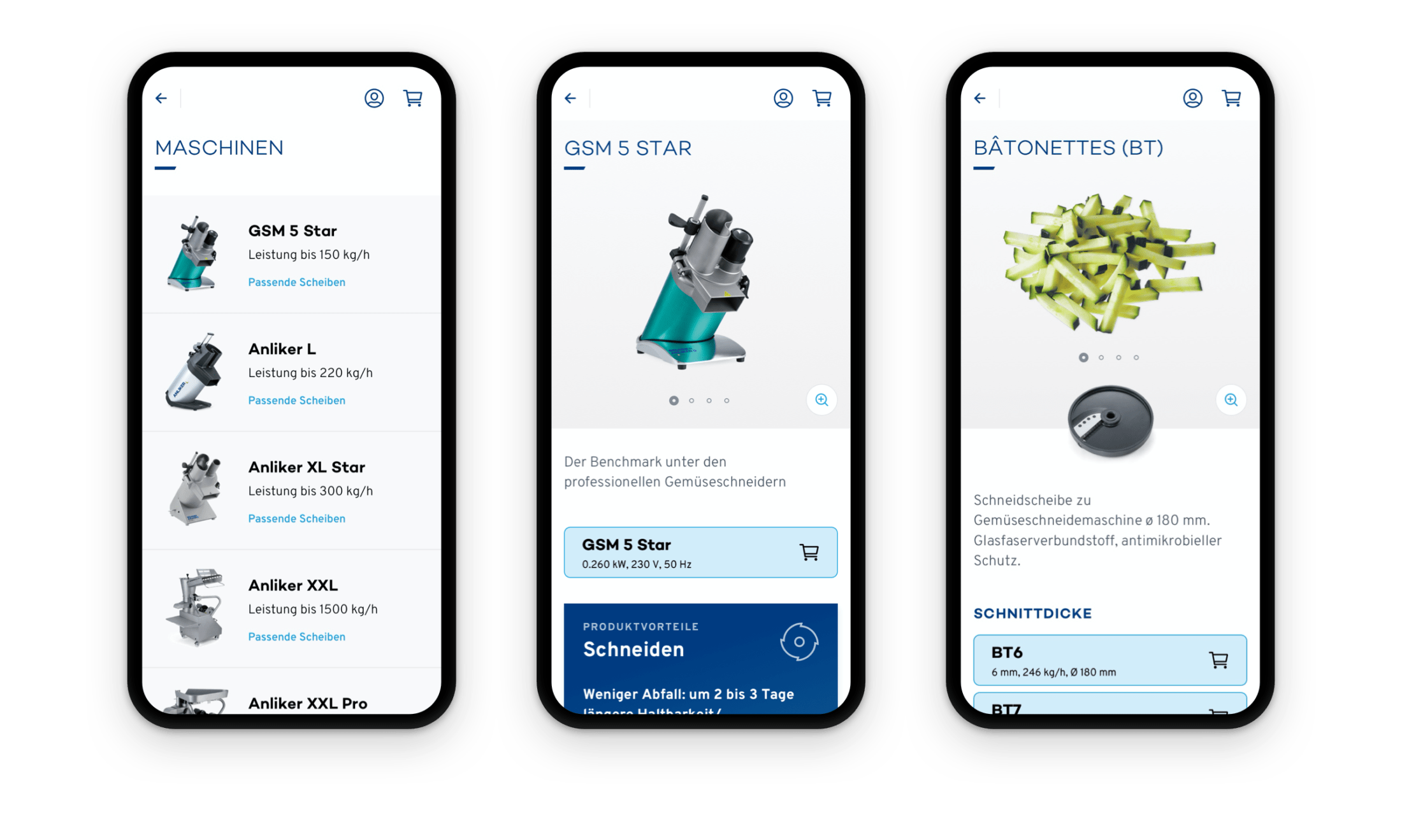 Künftig unterstützt eine Web App die Händler bei der Beratung. Das Verkaufsgespräch wird meist beim Kunden vor Ort, in der Grossküche oder im Rüstbetrieb geführt. Anstatt wie bisher in diversen Katalogen zu blättern, führt der Händler neu mit EasyTools strukturiert und effizient durchs Verkaufsgespräch. Die Aufmerksamkeit des Kunden bleibt dabei immer auf Brunner-Anliker fokussiert.