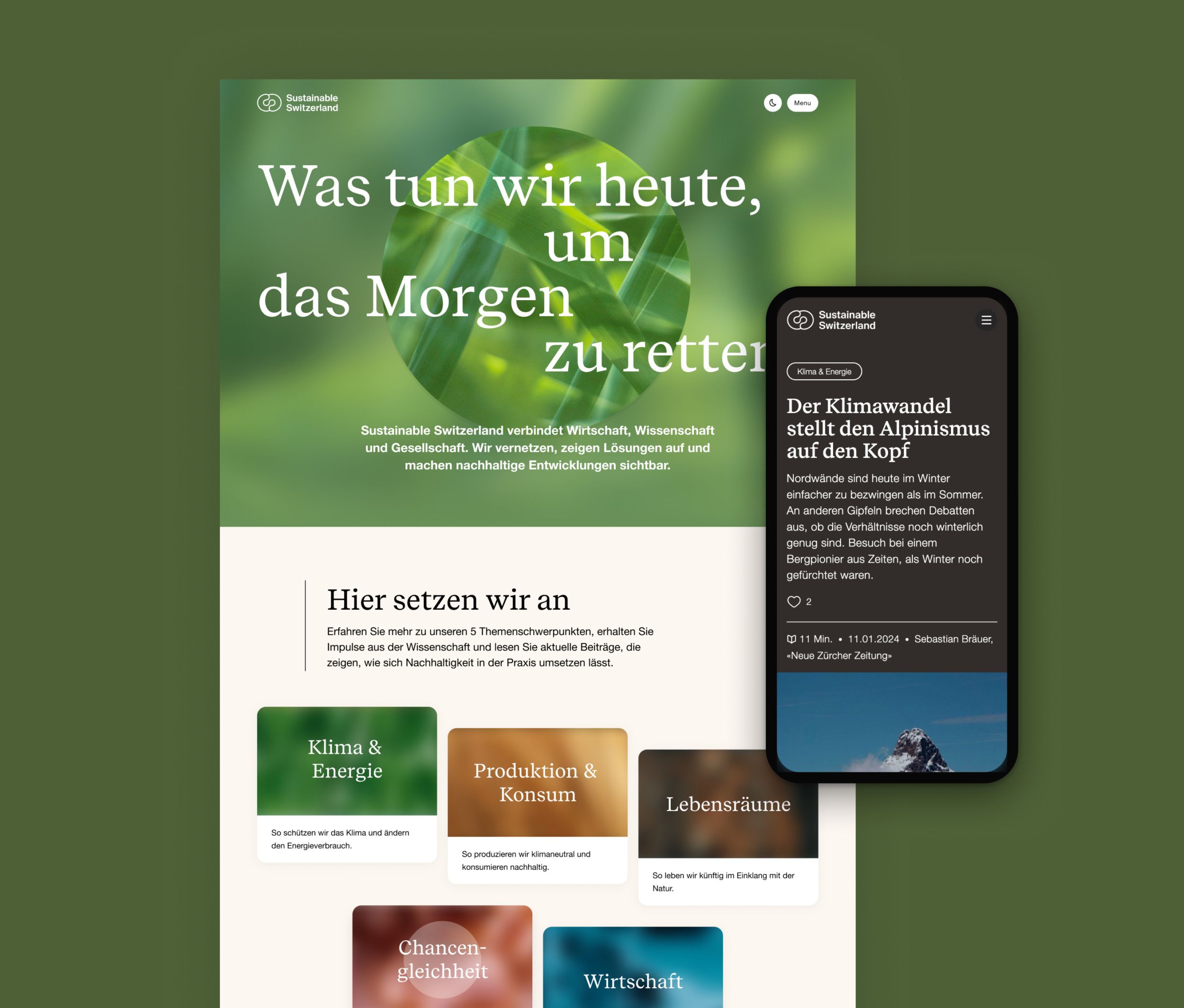 Mit dem erfolgreichen Relaunch von Sustainable Switzerland haben wir ein benutzerorientiertes Portal geschaffen, um eine breite Zielgruppe zu erreichen und das Bewusstsein für Nachhaltigkeit in der Schweiz zu stärken. Das geschärfte und modernisierte Brand Design lässt sich nun praktisch und einfach auf weitere Kanäle und Anwendungen adaptieren. Im Sinne der Nachhaltigkeit wünschen wir der Initiative viel Erfolg.